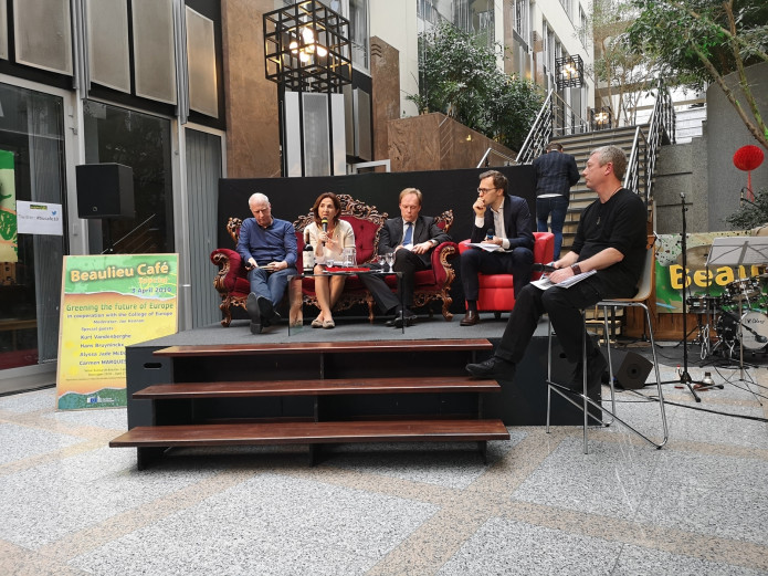 The Beaulieu café was introduced with an inspiring speech by Mr Daniel CALLEJA, Director General of DG ENV. Four students of the College of Europe then presented a number of ideas encapsulated in their input paper. A panel debate, with participants Kurt VANDENBERGHE (Director for Policy Development and Coordination in DG RTD), Alexandre AFFRE (Director for the Industrial Affairs department at BusinessEurope), Carmen MARQUES RUIZ (Policy coordinator on environment and water at the European External Action Service) and Hans BRUYNINCKX (Executive Director of the European Environment Agency) discussed the issues raised by the students. Central in the debate was the role of the Commission in achieving support for policies while creating a paradigm shift (in line with the ideas of Thomas KUHN, and applied to society and government) as put forward by the students. The students also raised the point of challenges to proper governance (raising the need for a mission-oriented approach), as well as the need for attention to the redistributive effects of environmental policies.