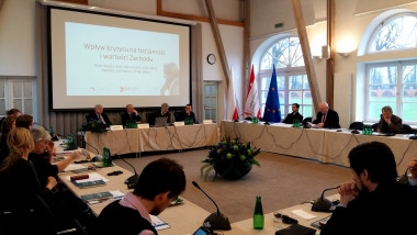 The conference was devoted to the role of identity, security, values and ethics in comprehension of the condition of the contemporary Western world and examined the question whether it is important to include the humanistic context in the research on crisis. The recent changes taking place in Europe and reactions to current crises (such as migration, democracy, geopolitics, economic and social order) have shown the growing importance of culture, identity and memory in democratic politics, exceeding the bounds of any strategic culture theory. This raises an important question whether the current crisis results in making the identity and values, as well as their cultural and historical context, an independent explanatory variable of political behaviours and decisions in public and in politics.