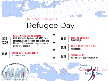 On 12 April 2018, the student teams College of Europe Runs for Charity Group and Migration and Asylum Awareness Group organised a Refugee Day at the College of Europe, Bruges campus.