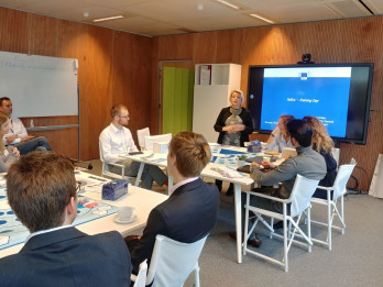On 19 October 2018, the students of the Tellus: EU Environmental Policy Lab joined for a full training day at the Commission's Join Research Centre. The day started with a general discussion of challenges to environmental policies by Mr Laurent BONTOUX (DG JRC) and Ms Joanna DRAKE, Deputy Director-General of DG ENV, followed by a simulation game. In the afternoon, several experts of DG ENV discussed a selection of topics and tools of EU environmental policies.