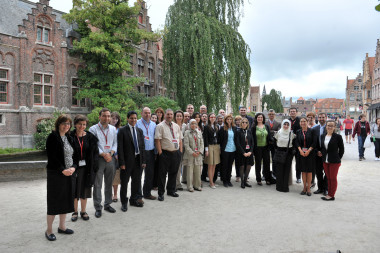 Du lundi 16 au vendredi 20 juin 2014, vingt-six participants de différents pays de la Politique européenne de voisinage (PEV) sont présents au Collège d'Europe à Bruges pour se préparer à l’exercice d’un emploi en rapport avec l’Union européenne et la Politique européenne de voisinage (PEV). Cette formation s’inscrit dans le cadre du projet européen « Projet Région PEV : Préparer le personnel à des emplois liés à l'UE-PEV » mis en place depuis 2011. Ce projet comprend dix modules sur les thèmes suivants : institutions de l'UE, politiques de l'UE en matière de commerce et d’énergie, cours pratiques pour se former à la gestion de projets ou aux techniques de négociation avec et au sein de l'UE. En provenance des pays de la PEV (Algérie , Arménie, Azerbaïdjan, Biélorussie, Égypte, Géorgie, Israël, Jordanie, Liban, Moldavie, Maroc, Palestine, Tunisie, Ukraine), les participants ont déjà suivi une formation au sein du Collège d’Europe mais reviennent pour approfondir leurs connaissances sur l'UE et sa politique de voisinage, et pour partager de bonnes pratiques et des expériences.